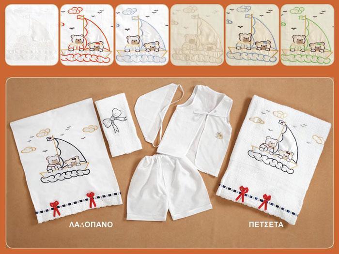 Λαδόπανα με θέμα θαλασσινό ελληνικής κατασκευής άριστης ποιότητας σε διάφορες αποχρώσεις. Το σετ περιλαμβάνει πετσέτα μικρή και μεγάλη, σεντονάκι και σετ εσώρουχα.
