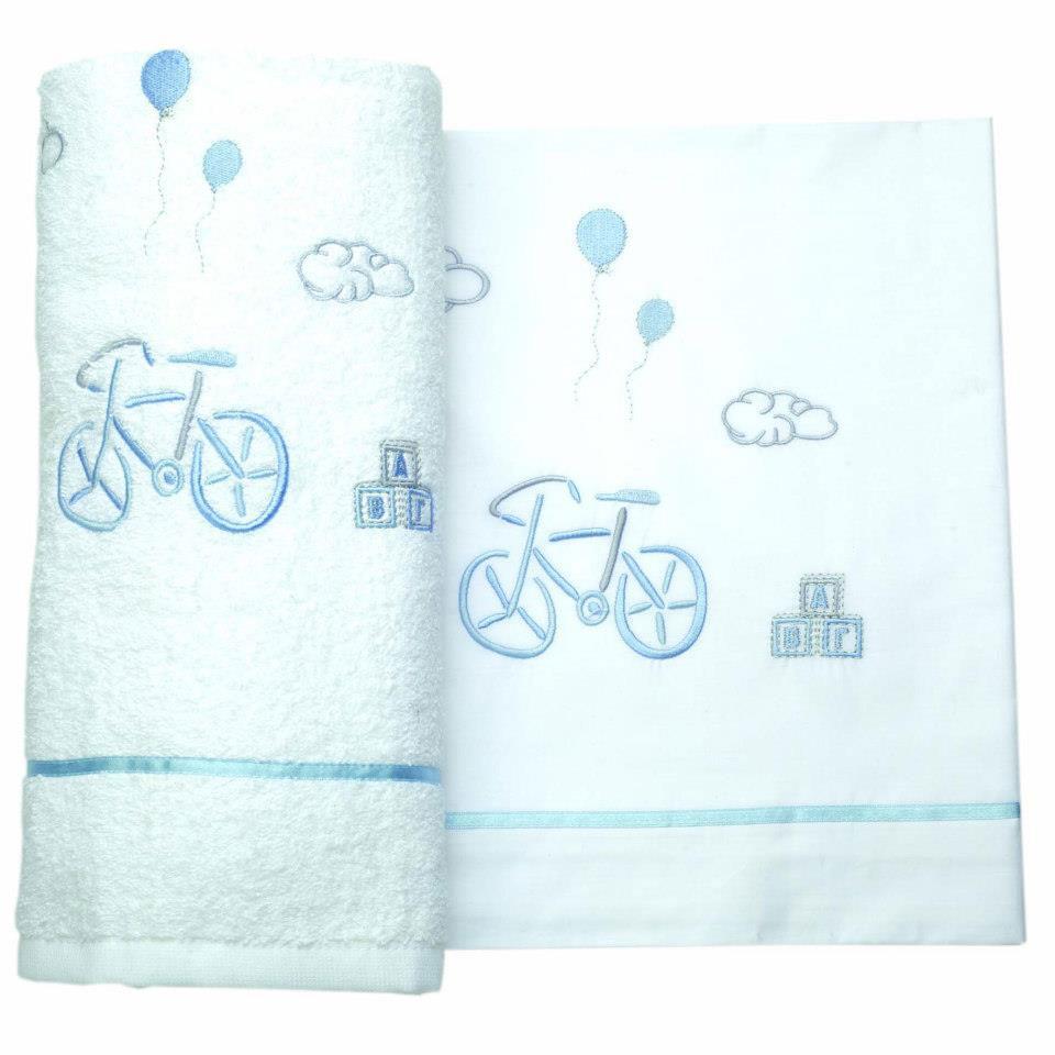 Λαδόπανα Βάπτισης με θέμα ποδηλατάκι ελληνικής κατασκευής άριστης ποιότητας βαμβακερά. Το σετ περιλαμβάνει πετσέτα μικρή και μεγάλη, σεντονάκι και σετ εσώρουχα.