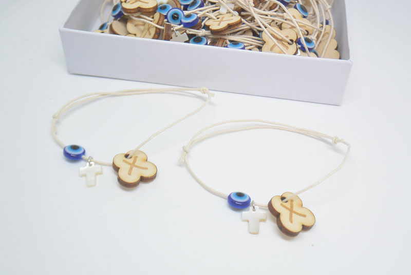 Μαρτυρικό σε βραχιολάκι με σταυρουδάκι φίλντισι και διακοσμητικό το μονόγραμμα του μωρού σε ότι απόχρωση επιθυμείτε. Η τιμή αφορά τo τεμάχιο.