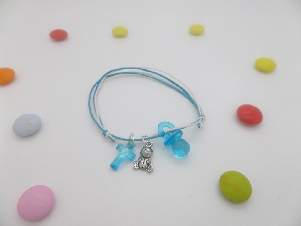Μαρτυρικό Βάπτισης βραχιολάκι με θέμα αρκουδάκι. Μπορεί να γίνει και σε ροζ απόχρωση. Η τιμή αφορά το τεμάχιο.