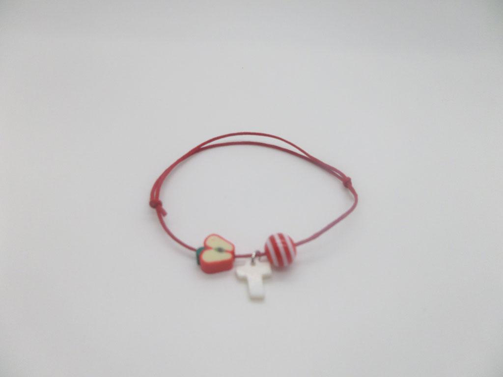 Μαρτυρικά Χειροποίητα με μήλο και σταυρουδάκι φίλντισι σε σχέδιο βραχιολάκι.
