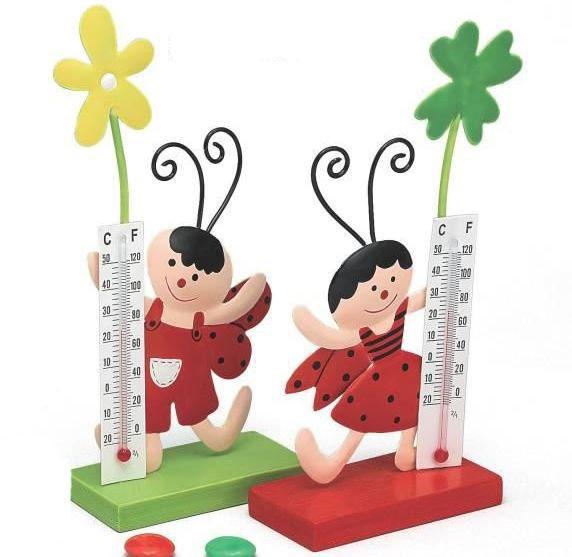 Μπομπονιέρα Βάπτισης πασχαλίτσα από ξύλο και μέταλλο με θερμόμετρο με διαστάσεις 15.5 εκ. Η τιμή αφορά δεμένη μπομπονιέρα με 5 κουφέτα αμυγδάλου ή 9 κουφετάκια smarties.