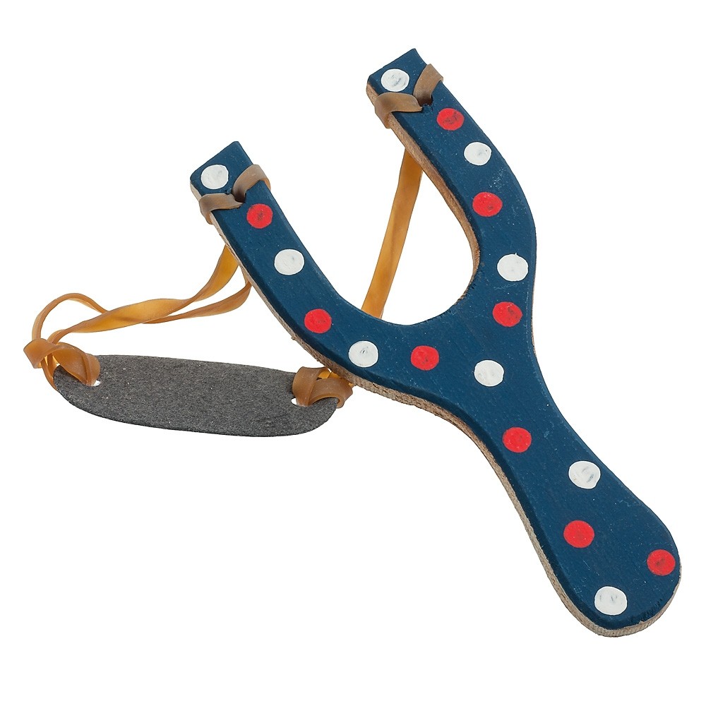 Ξύλινη ζωγραφιστή σφεντόνα σε μπλε navy/ λευκό-κόκκινο πουά.