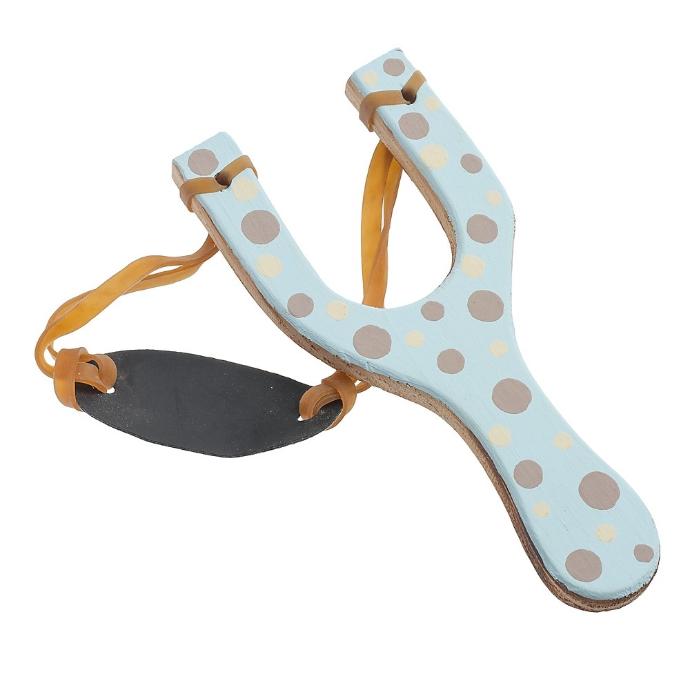 Γιογιό - Σβούρες - Σφεντόνες | Ξύλινη ζωγραφιστή σφεντόνα σε σιέλ/καφέ-κίτιρνο πουά