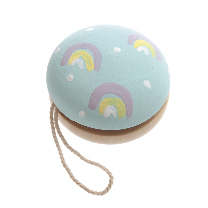 Ξύλινο ζωγραφιστό γιογιό σε βάση σιέλ και ουράνιο τόξο.