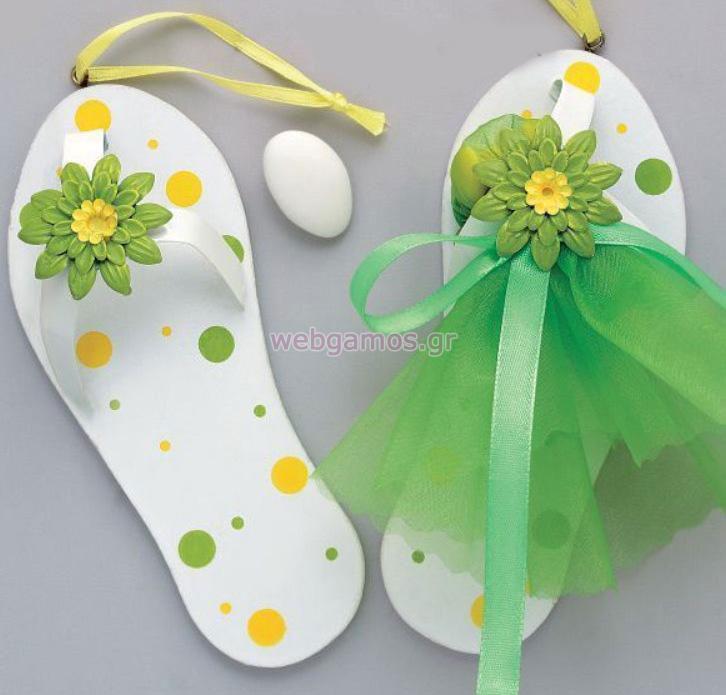 Μπομπονιέρα Βάπτισης διακοσμητικό παπουτσάκι. Η τιμή περιλαμβάνει το δέσιμο της μπομπονιέρας με 7 κουφετάκια smarties.