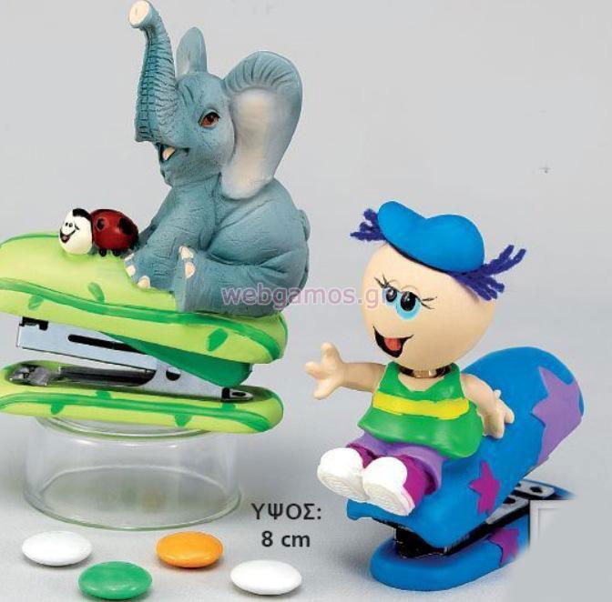 Μπομπονιέρα Βάπτισης συρραπτικό σε 2 σχέδια. Η τιμή περιλαμβάνει το δέσιμο της μπομπονιέρας με 7 κουφετάκια smarties.