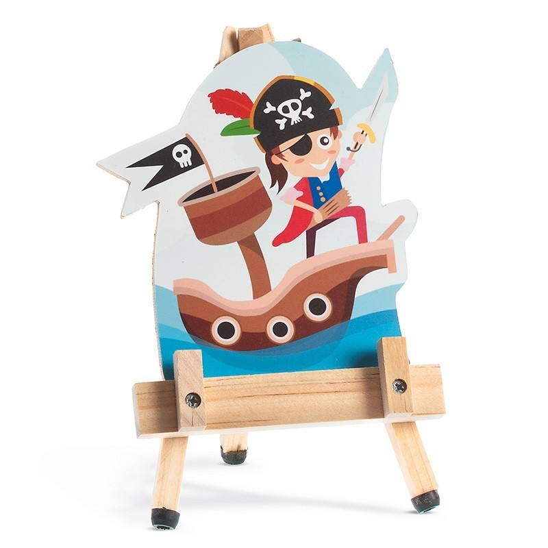Ξύλινο καδράκι πειρατής σε natural καβαλέτο.