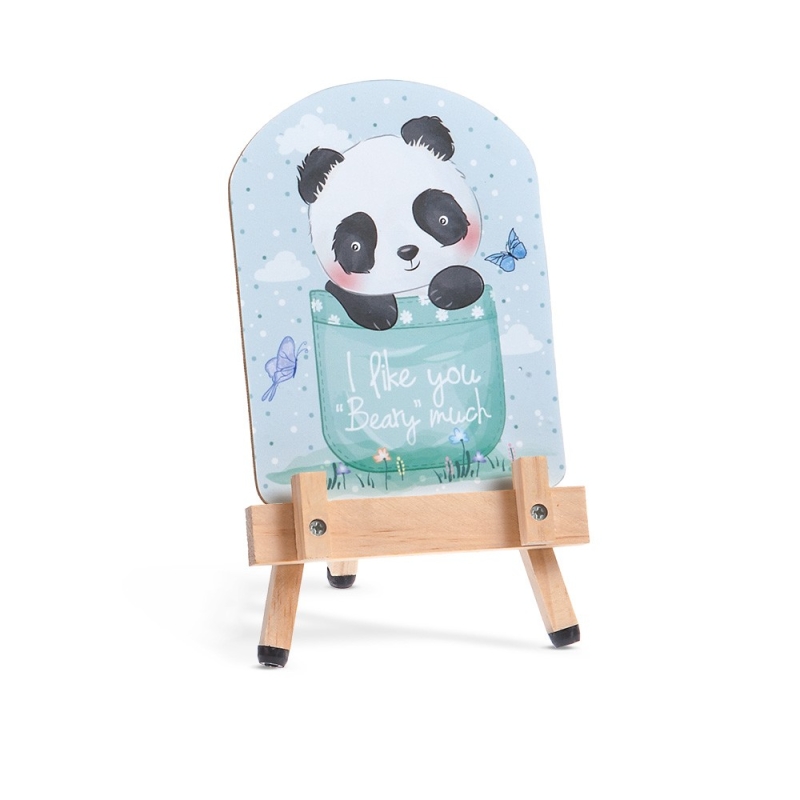 Ξύλινο καδράκι Panda σε natural καβαλέτο.