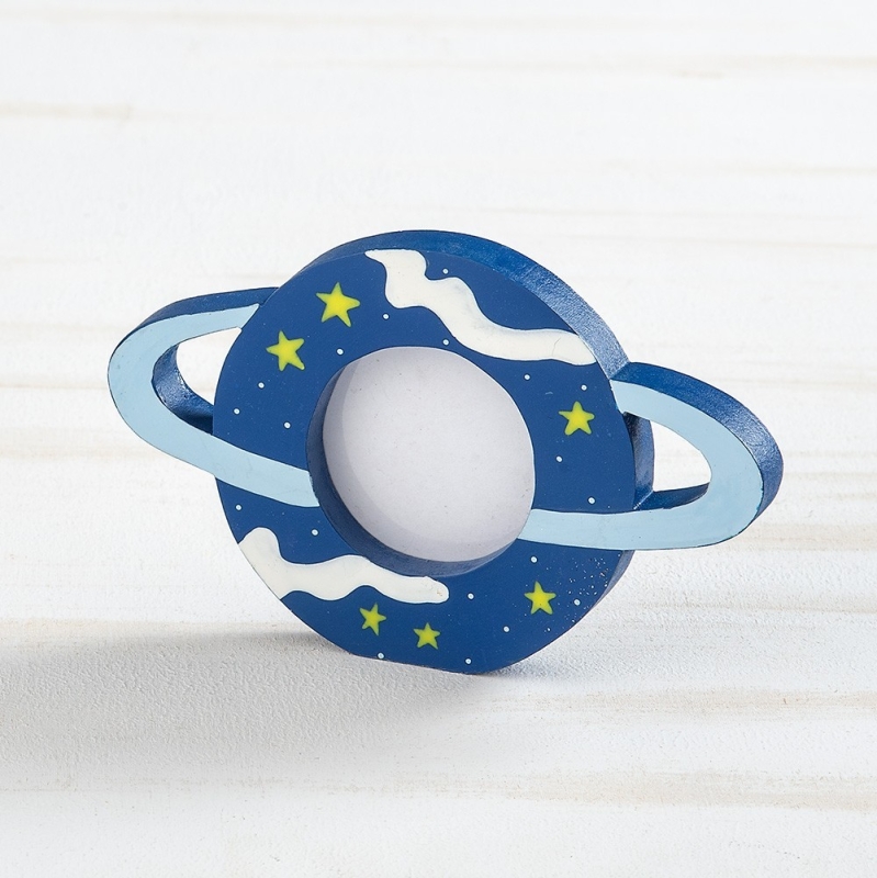 Ξύλινη διακοσμητική φωτογραφοθήκη σε σχήμα υδρόγειος σε μπλε χρώμα.