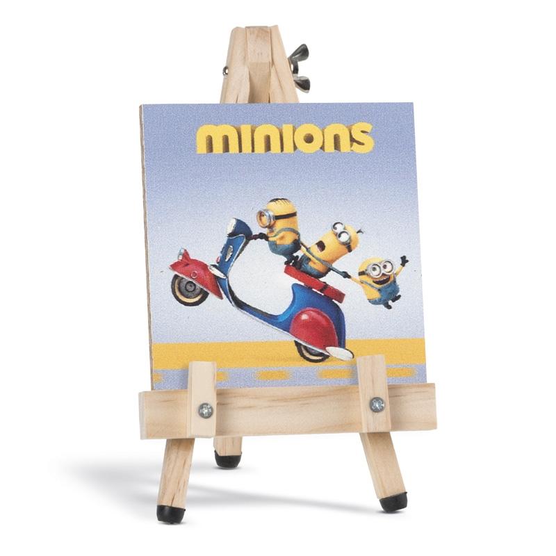 Μπομπονιέρα Βάπτισης καδράκι minion σε καβαλέτο. Διαστάσεις καδράκι 11 x 11 εκ και καβαλέτου 12 x 20 εκ.  Η τιμή περιλαμβάνει το δέσιμο της μπομπονιέρας με 5 κουφέτα αμυγδάλου ή 9 κουφετάκια smarties. Ελάχιστη ποσότητα 50 τεμάχια.