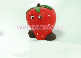 Μπομπονιέρα Βάπτισης κουμπαράς φράουλα με διαστάσεις 12 εκ. Η τιμή περιλαμβάνει δεμένη μπομπονιέρα με 5 κουφέτα αμυγδάλου ή 9 κουφετάκια smarties.