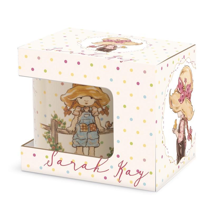 Μπομπονιέρα Βάπτισης κούπα Sarah Kay από πορσελάνη. Διάσταση κούπας 7,2 x 8,5 cm και κουτιού 10,8 x 7,8 x 9 cm. Η τιμή αφορά δεμένη μπομπονιέρα με 5 κουφέτα αμυγδάλου ή 9 κουφετάκια smarties.
