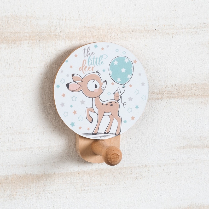 Ξύλινη natural κρεμάστρα τοίχου, διακοσμημένη με στρογγυλό κοπτικό Ελαφάκι.
