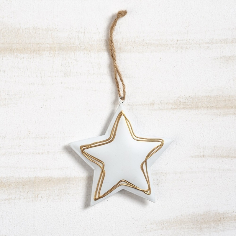 Μεταλλικό 3d κρεμαστό αστέρι λευκό με χρυσό ανάγλυφο περίγραμμα