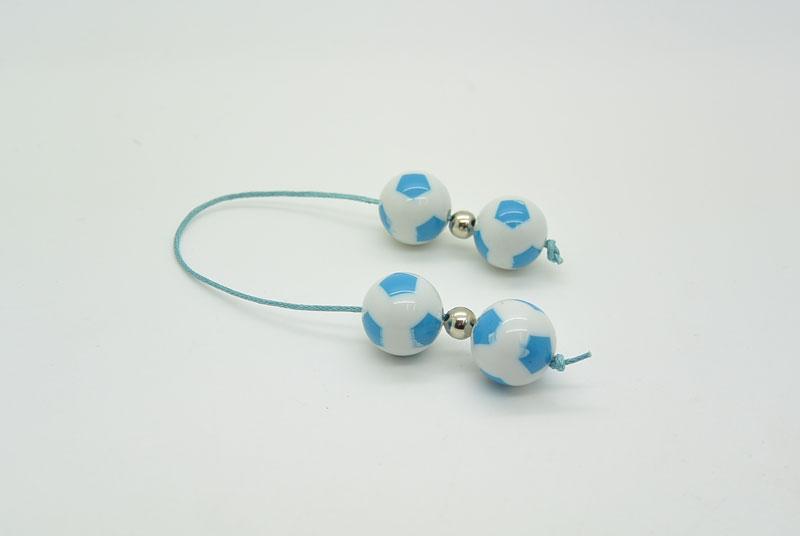 Μπεγλέρι με θέμα ποδόσφαιρο. Η τιμή αφορά μόνο το μπεγλέρι, με επιπλέον χρέωση μπορεί να γίνει ολοκληρωμένη μπομπονιέρα. Η χάντρα έχει διάμετρο 1.6 εκ.