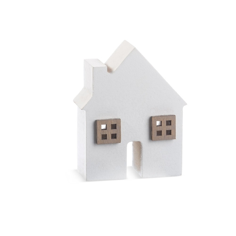 Ξύλινο διακοσμητικό σπιτάκι σε λευκό χρώμα με natural παράθυρα.