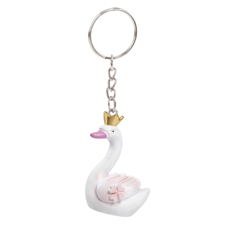Πολυεστερικό μπρελόκ κύκνος λευκός & ροζ με χρυσή κορώνα.