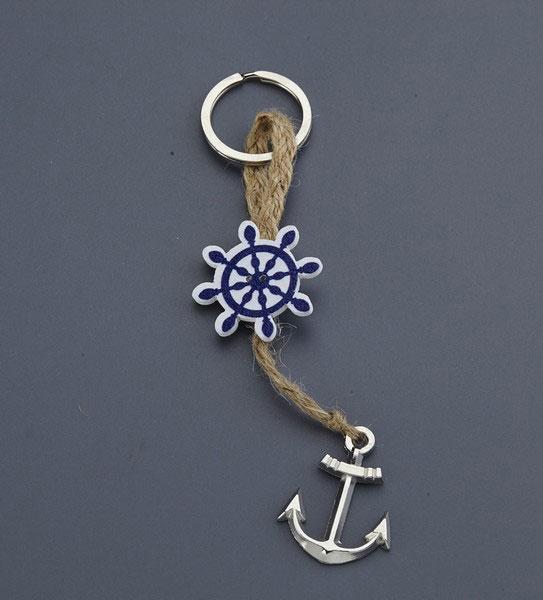 Μπρελόκ Θαλασσινό με τιμονάκι και άγκυρα. Η τιμή αφορά το μπρελόκ. Διάσταση 12 εκ.