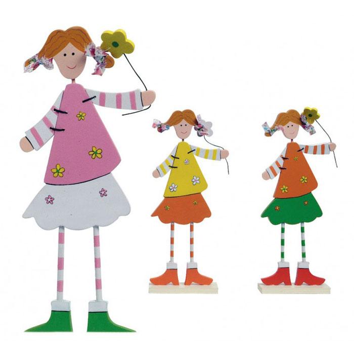 Μπομπονιέρα Βάπτισης ξύλινο σταντ κοριτσάκι. Η τιμή περιλαμβάνει το δέσιμο της μπομπονιέρας με 9 κουφετάκια smarties ή 5 κουφέτα αμυγδάλου. Διαστάσεις 20 εκ.