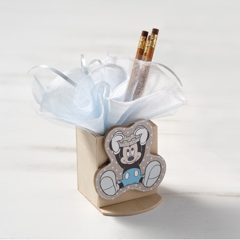 Disney ξύλινο natural μολυβοθήκη. Είναι διακοσμημένη με ξύλινη παράσταση print Mickey mouse Little prince in his castle σε σιέλ αποχρώσεις