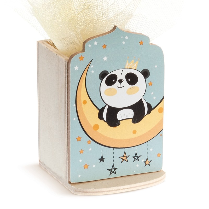 Ξύλινη μολυβοθήκη σε natural χρώμα. Διακοσμημένο με κοπτικό panda.