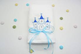 Μπομπονιέρα Βάπτισης πετσέτα με κεντημένο θέμα κάστρο. Η τιμή αφορά δεμένη μπομπονιέρα με 5 κουφέτα αμυγδάλου ή 9 κουφετάκια smarties. Διάσταση πετσέτας 30 χ 50 εκ. Με έξτρα χρέωση 0.30 μπορεί να κεντηθεί και το όνομα του παιδιού.