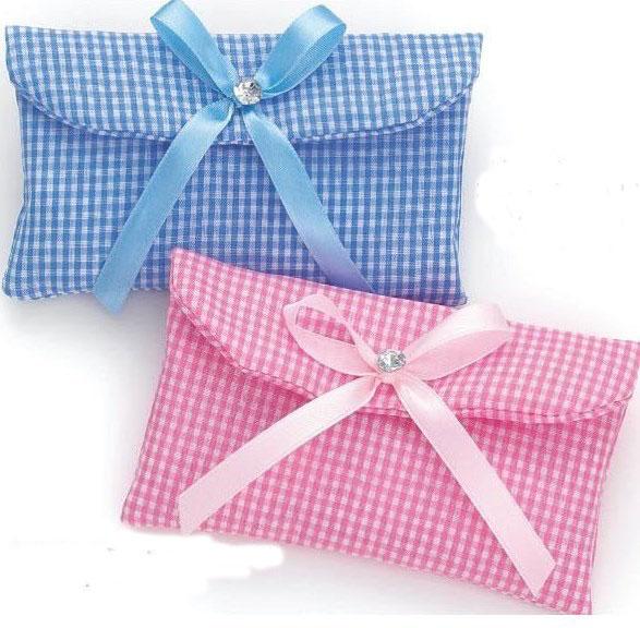Μπομπονιέρα Βάπτισης πουγκί φάκελος καρό με διαστάσεις 12 x 7.5 cm. Η τιμή αφορά το δέσιμο της μπομπονιέρας με 9 κουφετάκια smarties ή 5 αμυγδάλου.