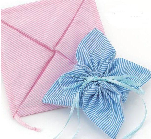 Μπομπονιέρα Βάπτισης πουγκί πρωτότυπο τετράγωνο με διαστάσεις 16 x 16 cm. Η τιμή αφορά το δέσιμο της μπομπονιέρας με 9 κουφετάκια smarties ή 5 αμυγδάλου.