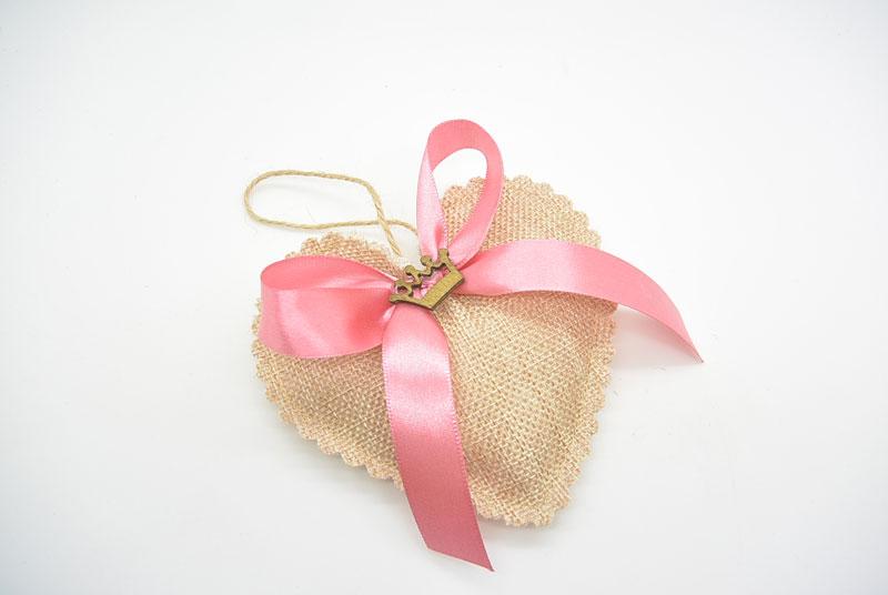Μπομπονιέρα Βάπτισης πουγκί καμβάς με σχέδιο καρδιά και διακοσμητική ξύλινη κορώνα. Η τιμή αφορά δεμένη μπομπονιέρα με 5 κουφέτα αμυγδάλου ή 9 κουφετάκια smarties. Διάσταση 12cm x 12cm. Η κορδέλα μπορεί να γίνει σε διάφορες αποχρώσεις.