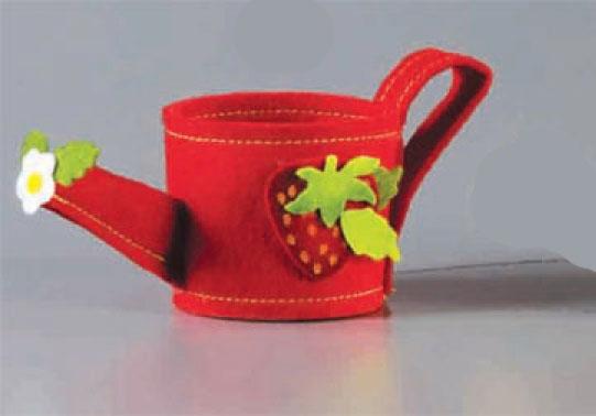 Μπομπονιέρα Βάπτισης φράουλα σε ποτιστήρι τσόχινο. Η τιμή αφορά δεμένη μπομπονιέρα με 5 κουφέτα αμυγδάλου ή 9 κουφετάκια smarties.
