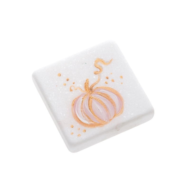 Επιτραπέζιο διακοσμητικό με βάση το μάρμαρο. Το μαρμαράκι είναι ζωγραφισμένο με κολοκύθα σε ροζ απόχρωση.