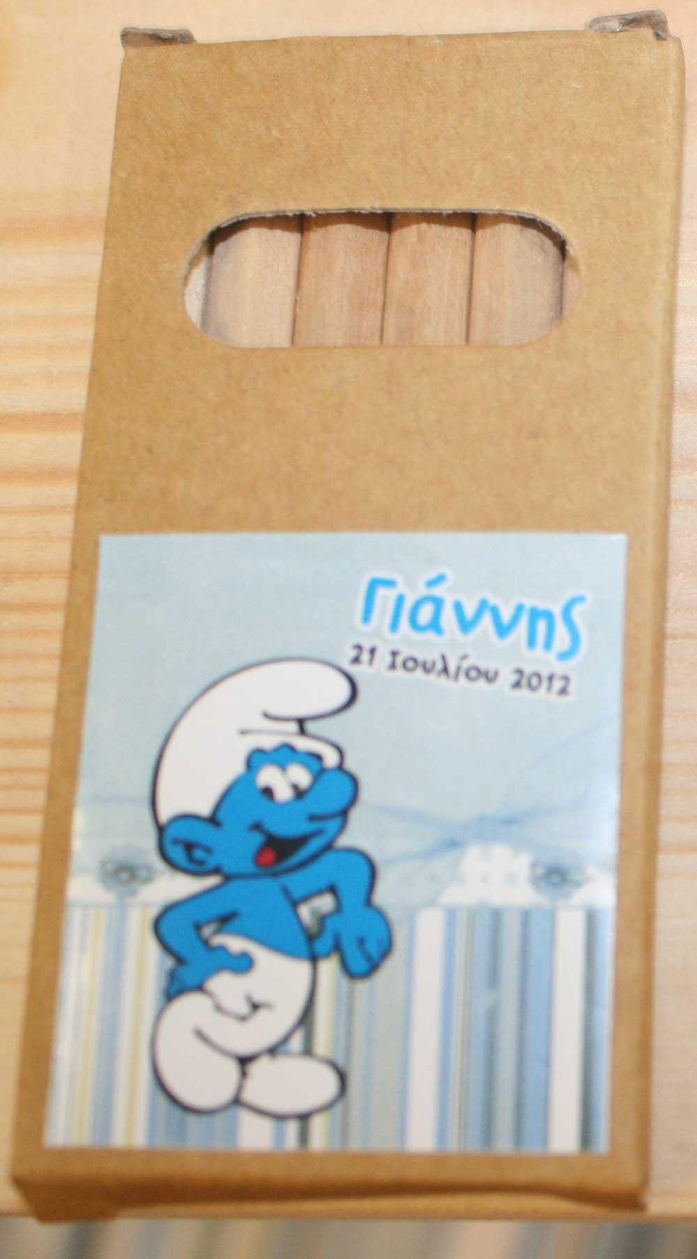 Ξυλομπογιές Στρουμφάκι για δωράκια σε βάπτιση ή παιδικό πάρτυ. Μπορούμε να προσαρμόσουμε ότι θέμα επιθυμείτε.  Η τιμή αφορά τις ξυλομπογιές.