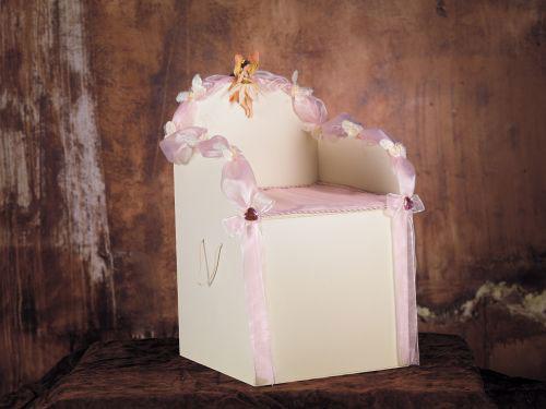 Ξύλινο κουτί βάπτισης με σχέδιο πολυθρόνα. Στην τιμή περιλαμβάνεται και ο στολισμός.