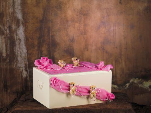 Ξύλινο κουτί βάπτισης μπαουλάκι. Στην τιμή περιλαμβάνεται και ο στολισμός.  Διαστάσεις Υ32 x Π40 x Μ60 x cm.