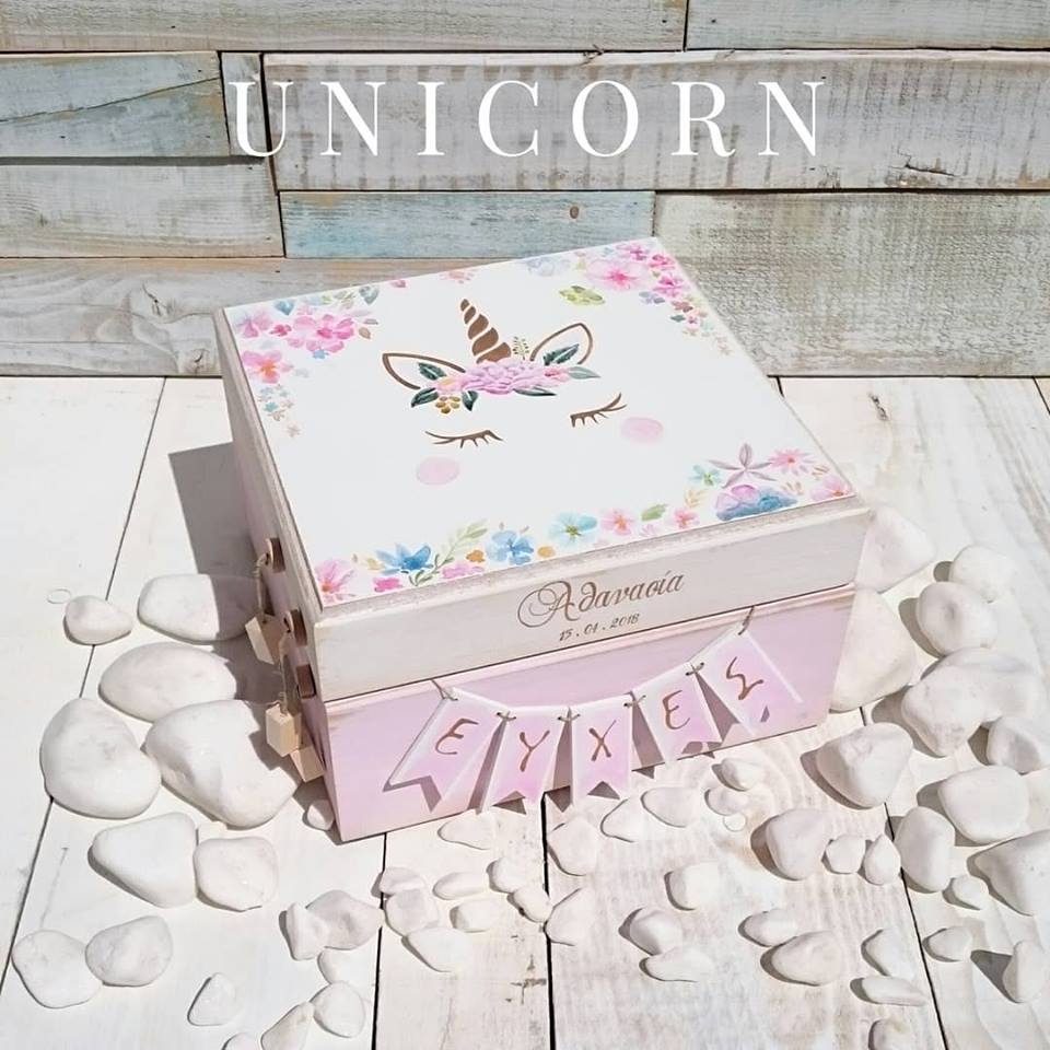 Ξύλινα Κουτιά ευχών βάπτισης | Ξύλινο Κουτί Ευχών βάπτισης μονόκερος (611813)