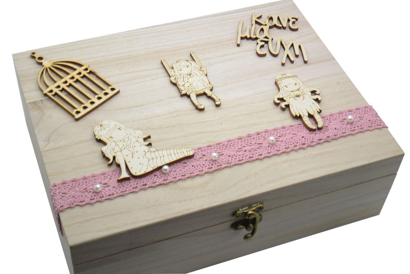 Ξύλινο Κουτί ευχών βάπτισης  με θέμα santoro gorjuss. Διαστάσεις κουτιού 32 x 25 x 11 εκ. Μπορεί να συνδιαστεί με ξύλινες καρδιές με επιπλέον χρέωση.