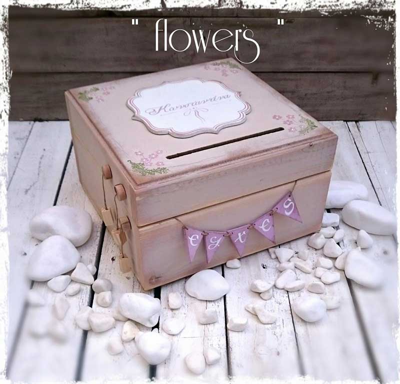 Ξύλινα Κουτιά ευχών βάπτισης | Ξύλινο Κουτί Ευχών βάπτισης λουλούδια (853585)