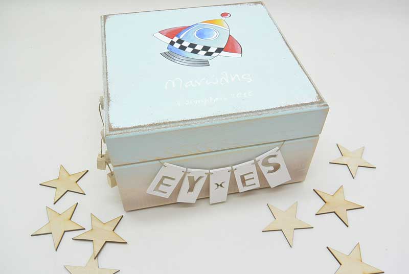Ξύλινα Κουτιά ευχών βάπτισης | Ξύλινο Κουτί Ευχών βάπτισης διάστημα (853649)