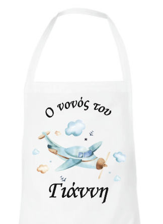 Λευκή ποδιά για το νονό ή τη νονά, εκτυπωμένη με θέμα "Αεροπλάνο". Γράψτε στα σχόλια μέσα στο καλάθι το όνομα του παιδιού σας.