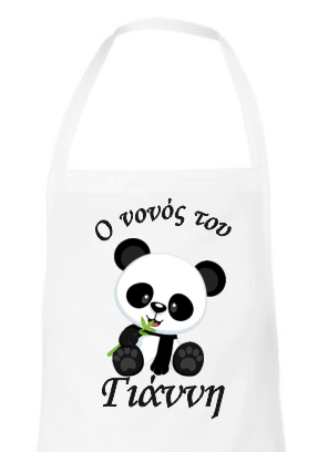 Λευκή ποδιά για το νονό ή τη νονά, εκτυπωμένη με θέμα "Αρκουδάκι Panda". Γράψτε στα σχόλια μέσα στο καλάθι το όνομα του παιδιού σας.