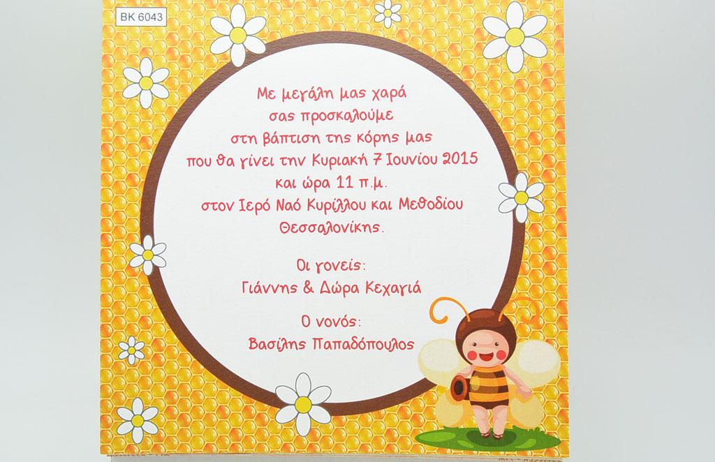 Προσκλητήριο Βάπτισης μελισσούλα (6043)