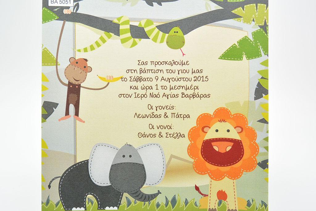 Προσκλητήρια Βάπτισης | Προσκλητήριο Βάπτισης ζωάκια (5051)