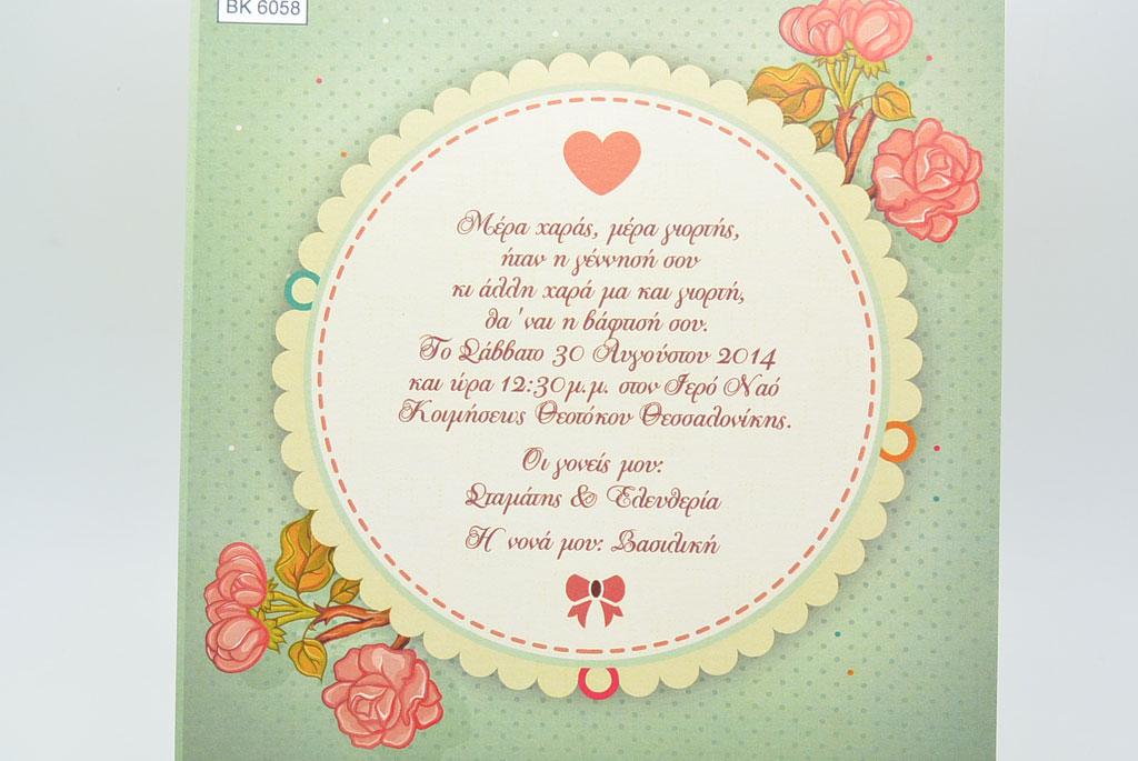Προσκλητήρια Βάπτισης | Προσκλητήριο Βάπτισης τριαντάφυλλο (6058)