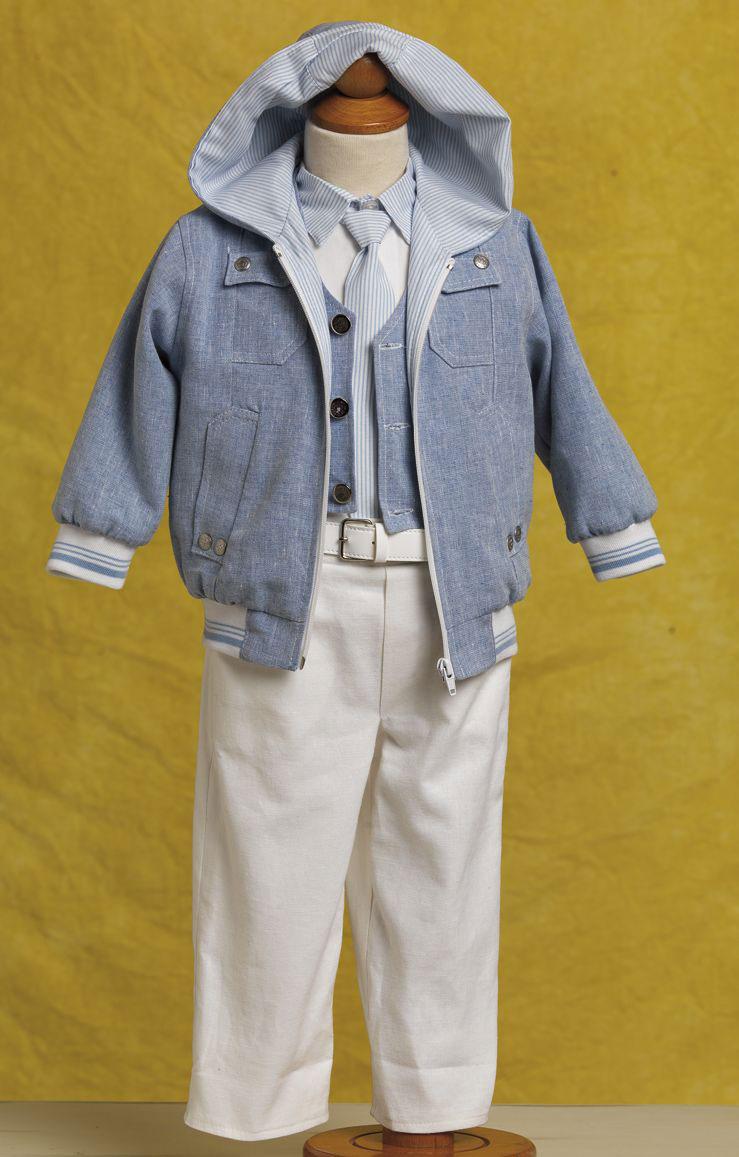 Βαπτιστικό Κουστούμι για αγοράκι λινό με μπουφάν ριγέ. Η τιμή περιλαμβάνει όλο το σετ όπως απεικονίζεται.