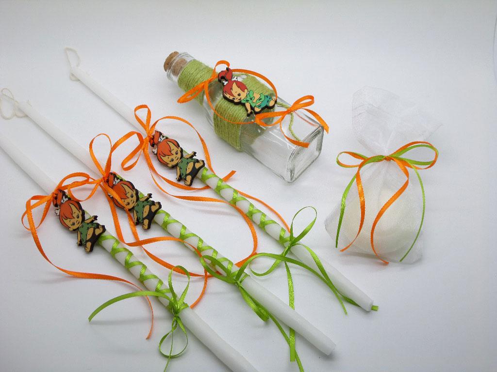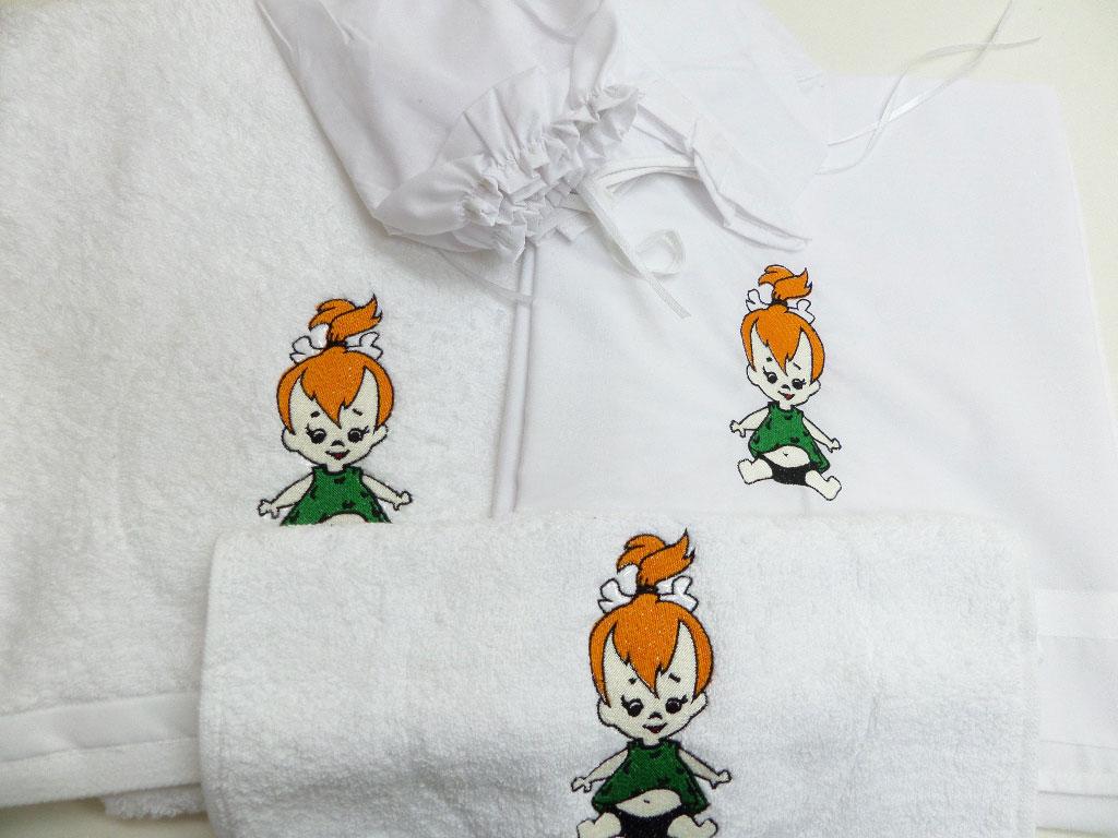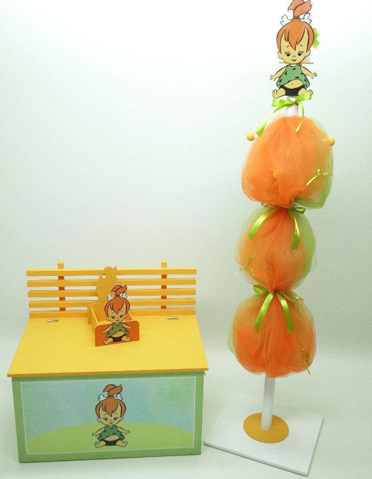 Σετ Βάπτισης σταλίτσα από τους flinstone.  Το σετ περιλαμβάνει ξύλινο κουτί βάπτισης παγκάκι, λαδόπανα κεντημένα, καλόγερο και σετ λαδικού στολισμένα στο ίδιο θέμα.