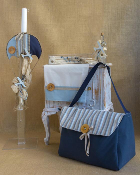 Σετ Βάπτισης αεροπλανάκι. Το σετ περιλαμβάνει βαλίτσα χειροποίητη, σετ λαδόπανα, λαμπάδα και σετ λαδικού όλα στολισμένα στο ίδιο θέμα.