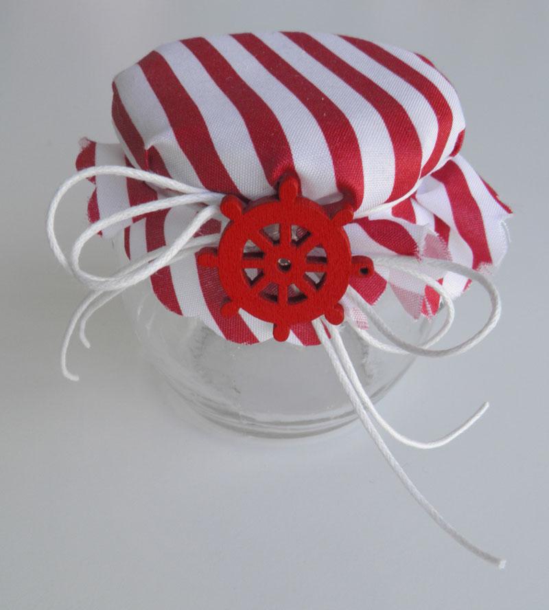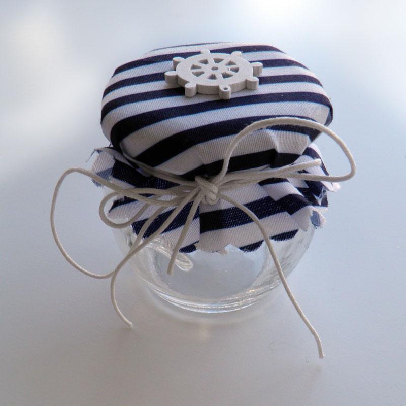 Βαζάκι με θέμα θαλασσινό στολισμένο με μαρμελάδα της επιλογής σας. Η τιμή αφορά βαζάκι orchio 106 ml. Τα χρώματα από τις κορδέλες, διακοσμητικά και πανάκια μπορούν να αλλάξουν όπως επιθυμείτε.