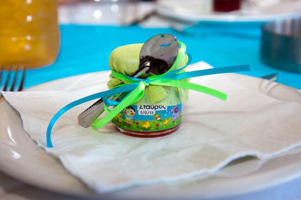 Βαζάκι με θέμα ζωάκια με μαρμελάδα της επιλογής σας στολισμένο με πανάκι και κουταλάκι. Η τιμή αφορά βαζάκι standard 40 ml.  Μπορούμε να προσαρμόσουμε οποιο θέμα θέλετε.