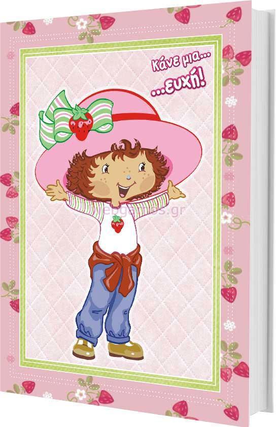Βιβλίο ευχών με θέμα φράουλες με διαστάσεις 30 x 21.5 cm. Ιδανικό για βάπτιση σε κοριτσάκι. Μπορούμε να προσαρμόσουμε οποιο άλλο θέμα θέλετε.